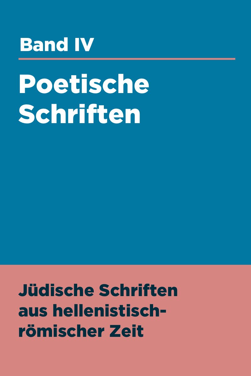Der vierte Band der Jüdischen Schriften aus hellenistisch-römischer Zeit besteht aus drei Lieferungen. Darin enthalten sind das Gebet Manasses, die fünf syrischen Psalmen, die Psalmen Salomos und weitere poetische Schriften.