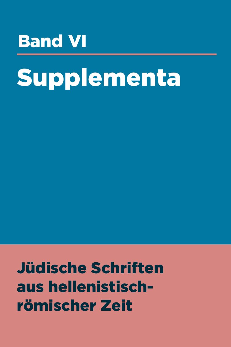 Der sechste Band der Jüdischen Schriften aus hellenistisch-römischer Zeit besteht aus fünf Lieferungen und enthält hilfreiche Zusätze zu den Bänden I bis V sowie eine Bibliographie.